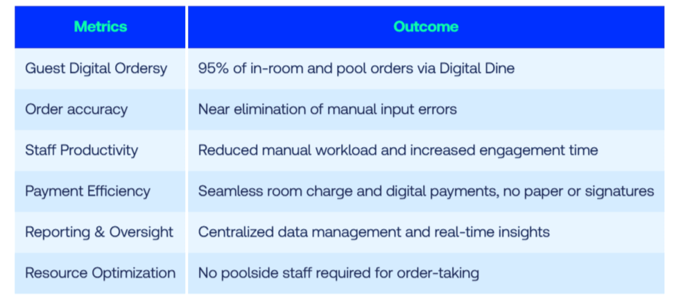 With 95% of room service and poolside orders placed directly through Stellaris Digital Dine, order errors have been virtually eliminated.